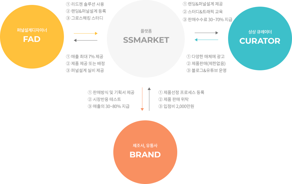 브랜드와 퍼널설계디자이너, 상상큐레이터와 소비자를 연결하는 퍼널마케팅 기반 플랫폼 상상마켓입니다.